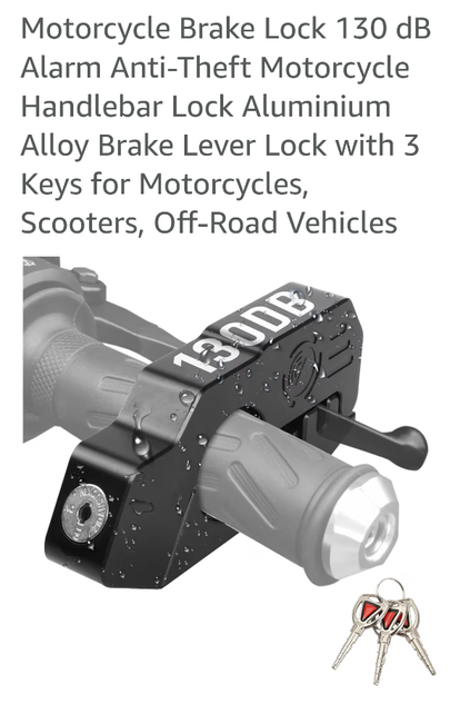 Motorcycle Brake Lock 130 dB Alarm Anti-Theft Motorcycle Handlebar Lock Aluminium Alloy Brake Lever Lock with 3 Keys for Motorcycles, Scooters, Off-Road Vehicles